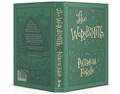Hand lettered illustrated jacket for 'The Wordsmith' by Patricia Forde