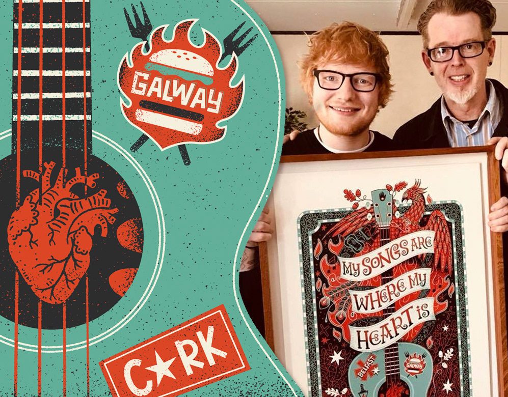 Art commission for Ed Sheeran from his Irish Promoter, Aiken promotions - Edition of 33 Screen Prints (3 colours) - printed by Damn Fine Print