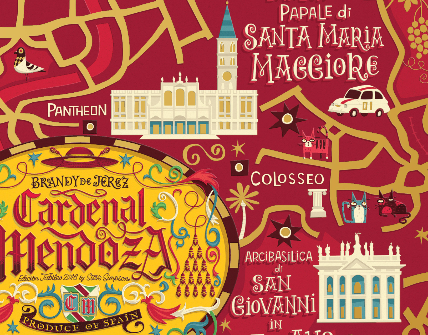 limited edition illustrated & hand lettered brandy label and packaging - Cardenal Mendoza