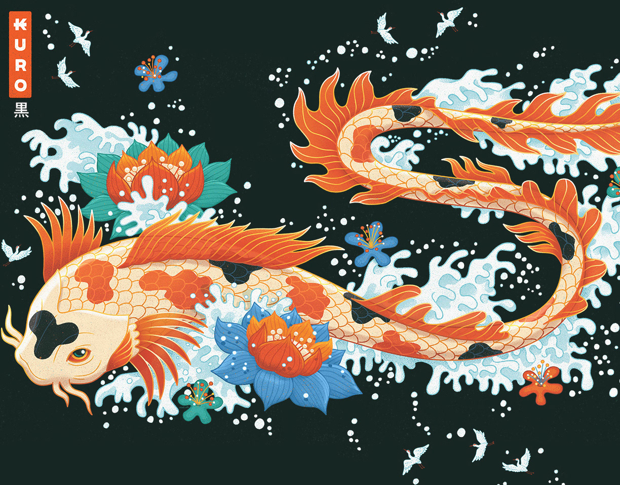Giant Asian Koi Carp illustrated mural for KURO, asian cuisine restaurant.