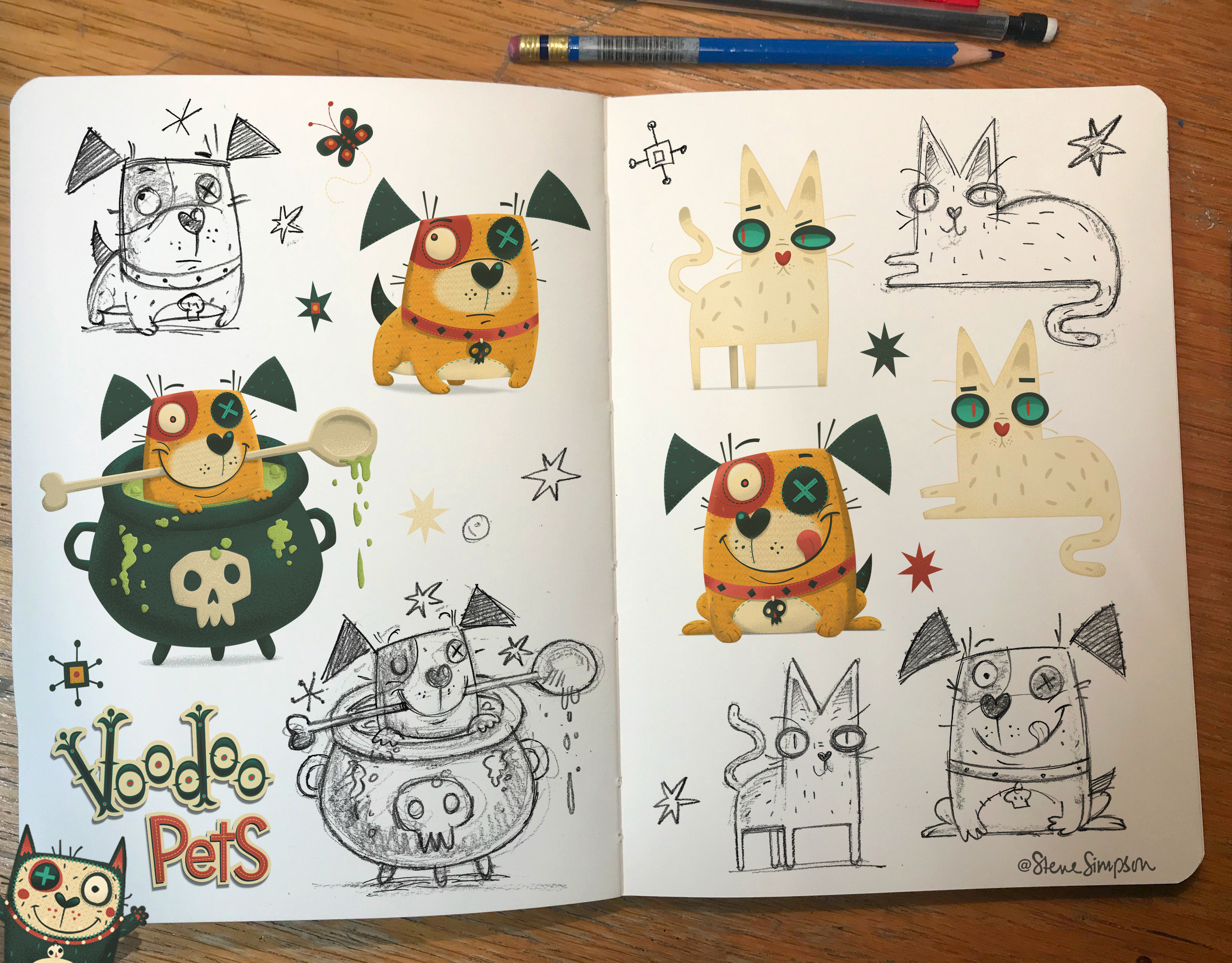 Pet shampoo packaging project including hand drawn lettering and illustrated characters