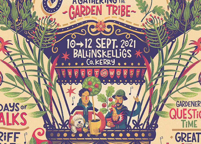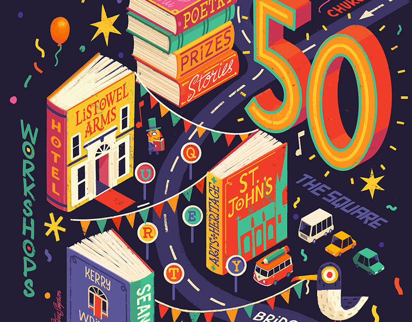 Illustrated and hand lettered poster for Ireland's oldest literary festival, Listowel Writers' Week