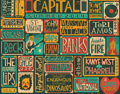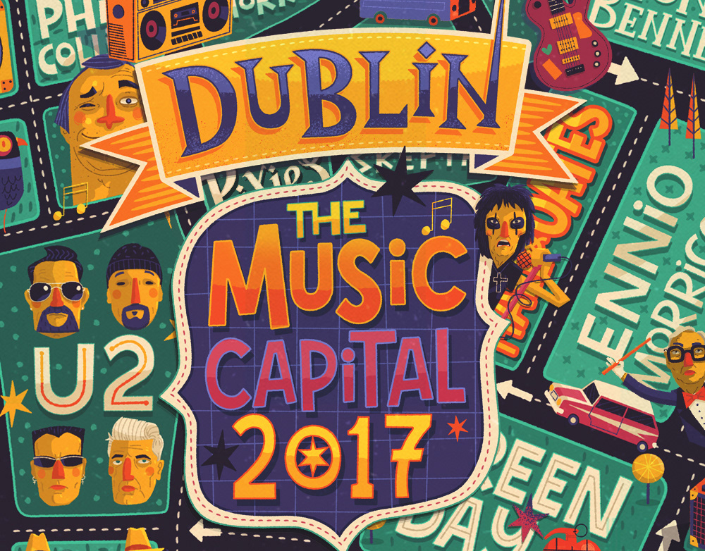 Illustrated poster celebrating all the music acts playing across Dublin this summer