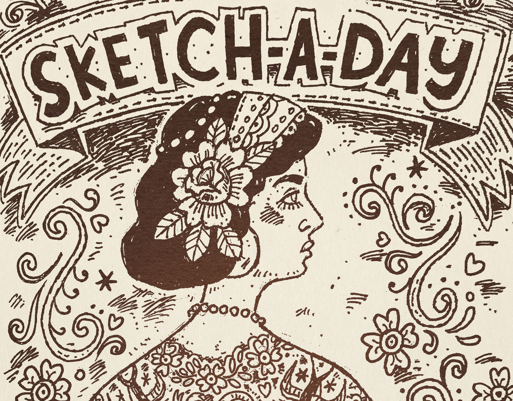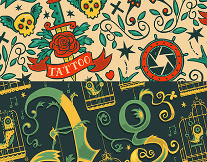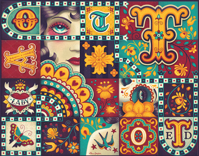 'Tattooed Lady' inspired by victorian ceramic tiles, fold art and old school tattoos