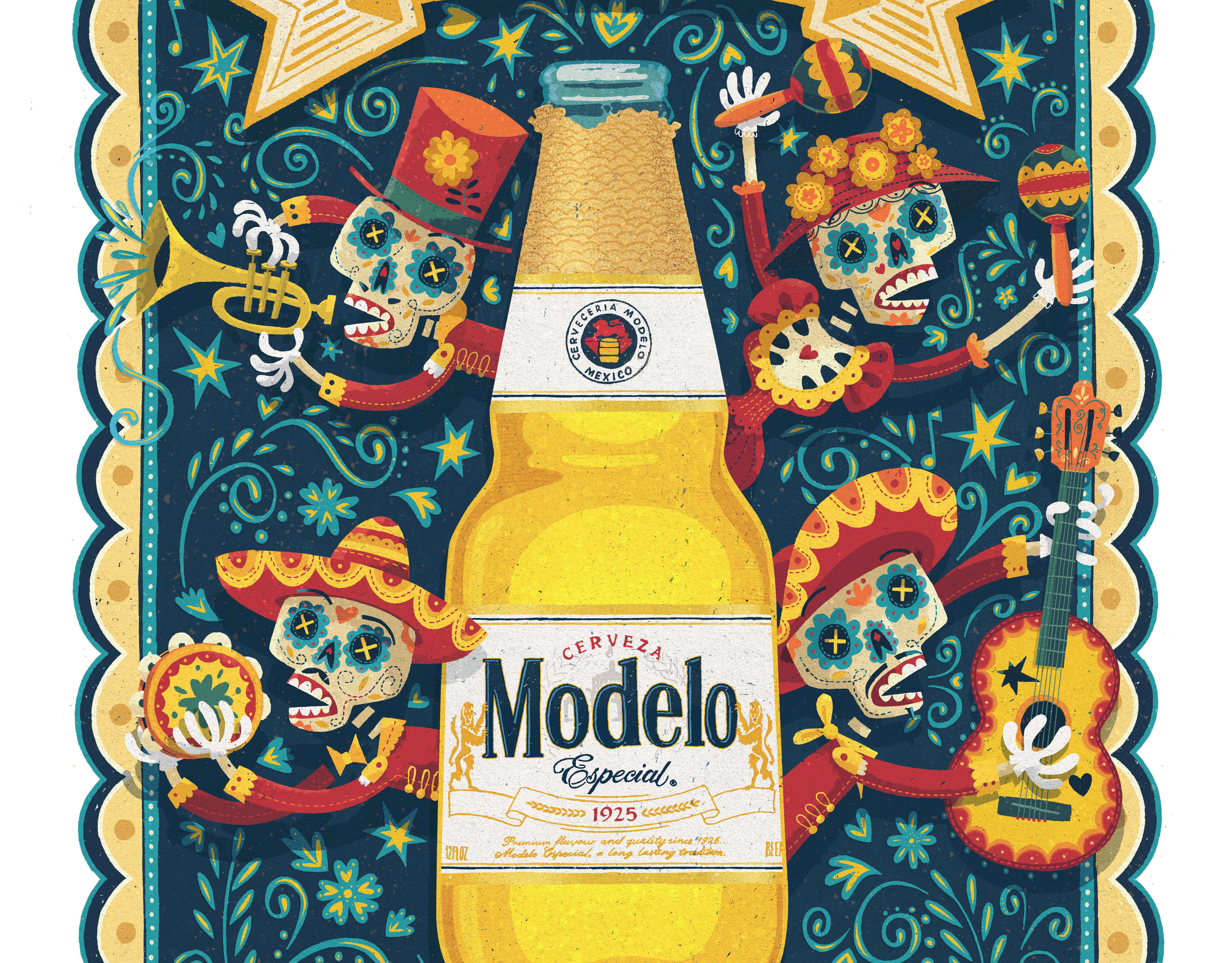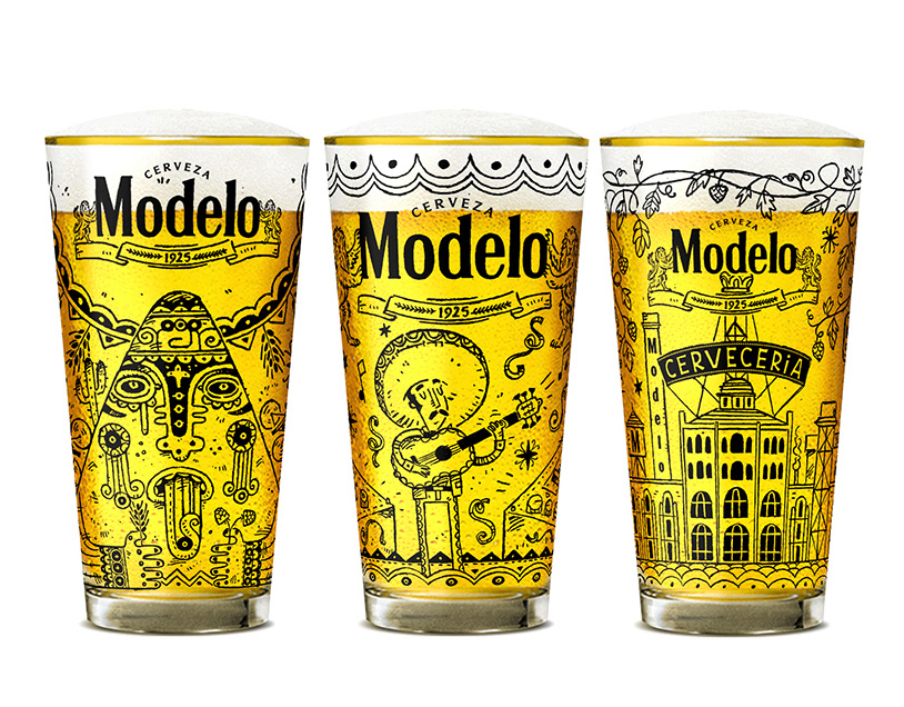 4 illustrated beer glass designs for Mexican brewery, Modelo