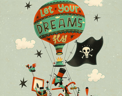 Illustrated steampunkesque flying machine based on implausible 18/19th century conceptual designs. Have a dream and believe:)